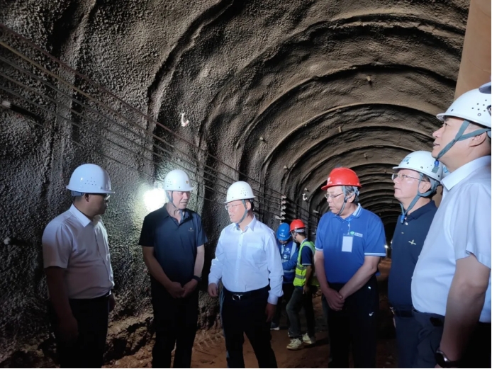 调研组一行实地审查了隧洞工程2#支洞施工现场,,,,,,,听取了玉门市水务局局长王德利关于项目建设内容以及项目希望情形的汇报,,,,,,,云顶国际vip.888节水集团总裁谢永生进一步针对隧洞工程各作业面的完成进度、现场清静管理、施工质量控制行动举行了汇报。。。。。。。