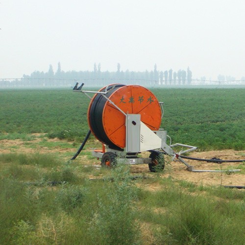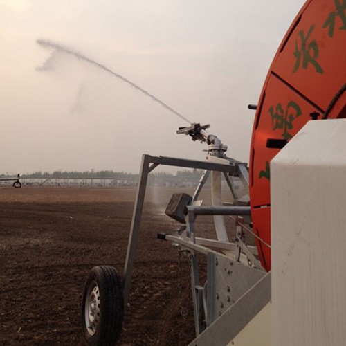 卷盘式喷灌机是一种将牵引PE管纠葛在绞盘上,,,,,,使用喷灌压力水驱动水涡轮旋转,,,,,,经变速装置驱动绞盘旋转,,,,,,拉动喷头车移动和喷洒的浇灌装备。。。。。
