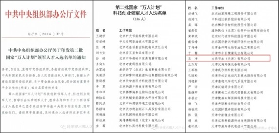 8月1日,,,,,,,中共中央组织部办公厅印发《关于第二批国家"万人妄想"领武士才入选名单的通知》(组厅字〔2016〕37号),,,,,,,第二批国家"万人妄想"领武士秀士选名单正式向全社会宣布效果,,,,,,,共有620名科技立异领武士才和336名科技创业领武士才入选。。。。。。。云顶国际vip.888节水集团公司副董事长、云顶国际vip.888节水(天津)有限公司董事长王冲乐成入选国家"万人妄想"领武士才。。。。。。。